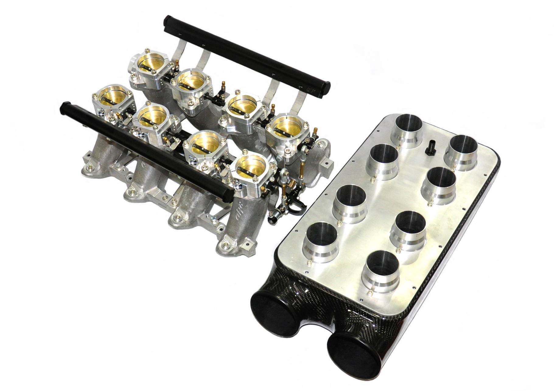 Maintains all standard equipment such as TPS, IAC, fuel rail and injectors. Also comes with high mounted fuel rail option to run secondary injectors or NOS etc.